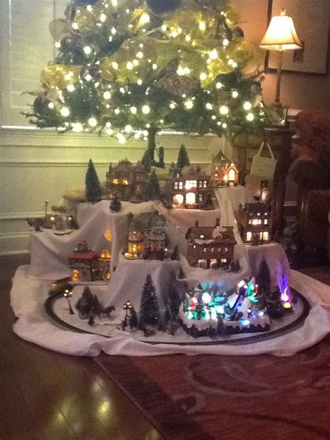 Christmas tree stand in the middle made into the. the tradition of setting up a christmas village under the tree is a beloved holiday tradition that goes back centuries.